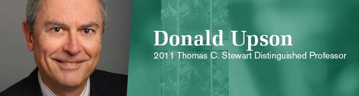 Don Upson is quick to give all the credit to his students, but it's no coincidence that year after year his students launch successful startups. The success of Shady Peeps, FloraGenex, Perpetua Power, Innovative Sports Strategies, Sunburst, and dozens more is a testament to Don's teaching, dedication, and mentorship. In recognition of Upson's contributions to advancing the economic vitality of the state, the reputation of the college, and the lives of students, the college has honored Upson as the 2011 Thomas C. Stewart Distinguished Professor. Congratulations Don.
